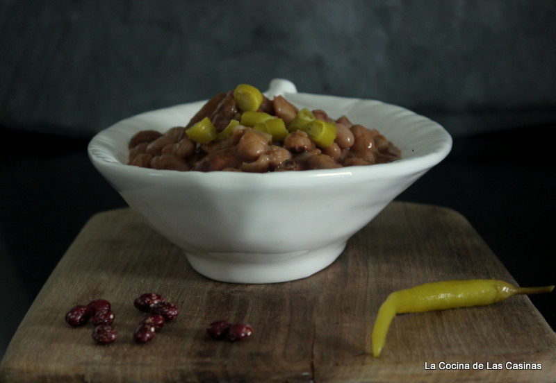 Acompañas con unas piparras. Es un platazo. Las alubias son pequeñas con muy poca piel y muy suaves en su interior. Están exquisitas.