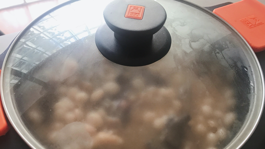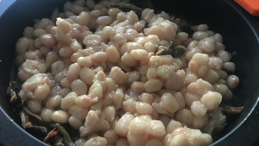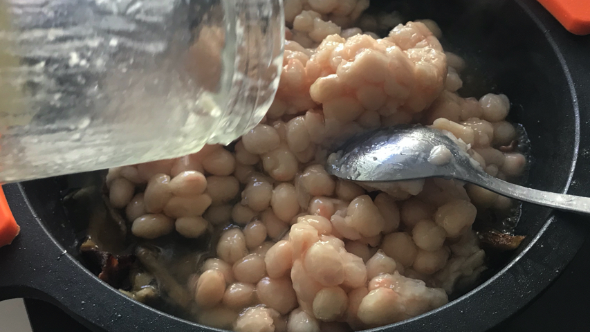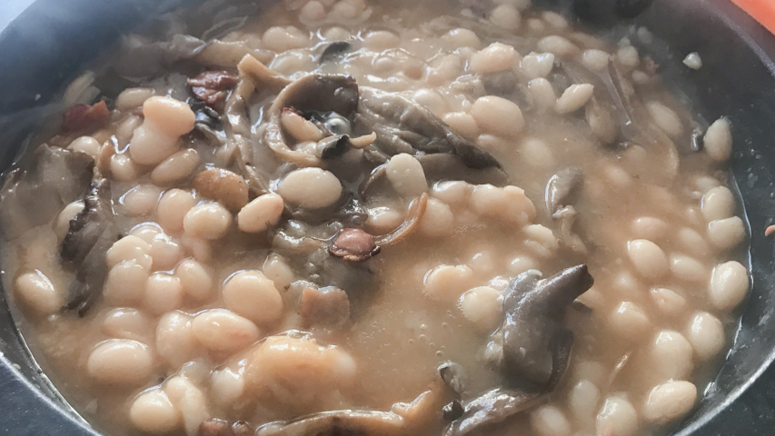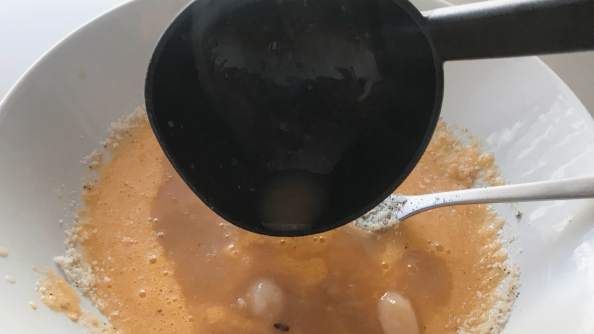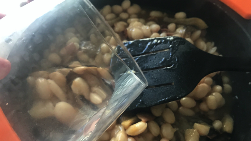 Añade también un poco de caldo de las alubias (no te importe si cae alguna alubia) y mezcla.