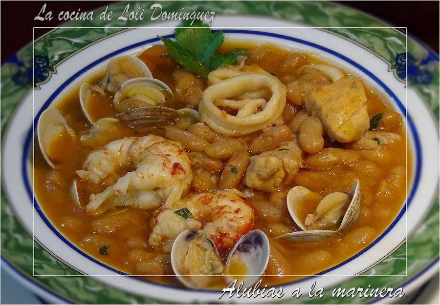 Una receta tradicional y de las más sabrosas que podemos preparar con marisco, además las alubias son unas legumbres muy económicas, plato de caliente que esta delicioso y nutritivo, para el tiempo de frio es una comida completa y saludable. Este plato es uno de los más típicos de cuchara para la cuaresma y Semana Santa.