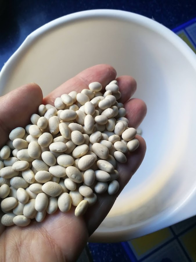 Hoy me he decidido por las alubias, y tenía estas que son de la variedad Michigan, también conocidas como Navy, alubia de santa Pau o mongetes o alubia arrocina son pequeñas, de color blanco y forma redonda; son muy sabrosas y digestivas, con mucha proteína y poca fibra, se cultivan en EE. UU. en el estado de Michigan y es ideal para preparar empedrados o acompañar platos. Cada día más se utiliza en sustitución de las judías de mayor tamaño.