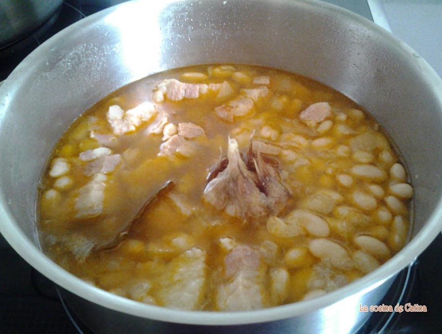 Cuando rompa a hervir de nuevo, bajar el fuego y dejar que se hagan a fuego lento durante una hora/hora y media, dependiendo de la calidad de las alubias, tienen que cocer cubiertas de agua, pero sin caldo de más. (Si las cocemos en olla rápida, con 20 minutos es suficiente).