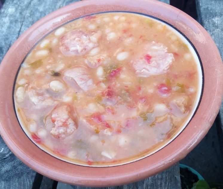 5.- Dejar freír un poco mas y luego agregar a las alubias que ya están blandas.