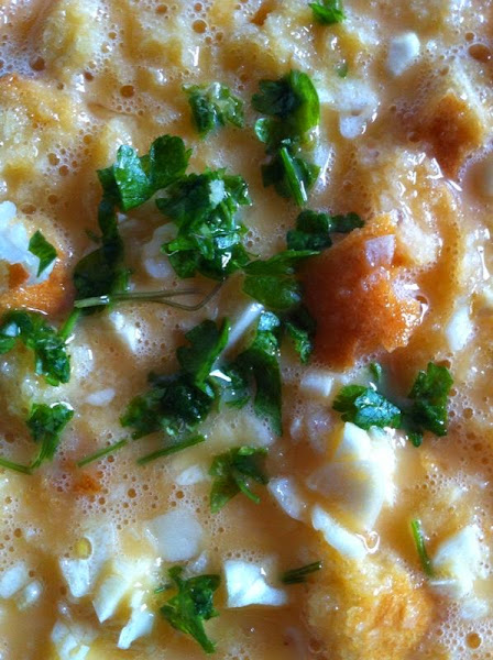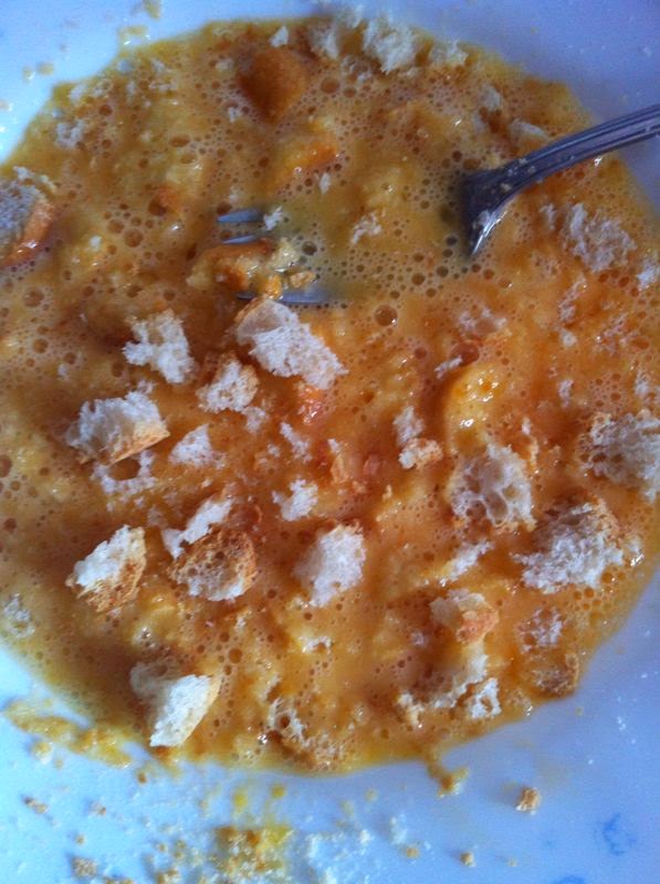 Para hacerlos, batiremos dos huevos en un plato, y rascaremos con ayuda de un chuchillo un mendrugo de pan duro.