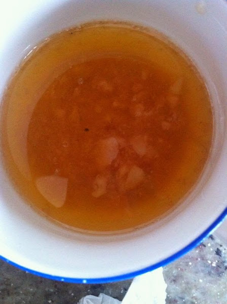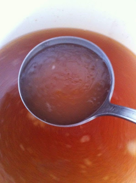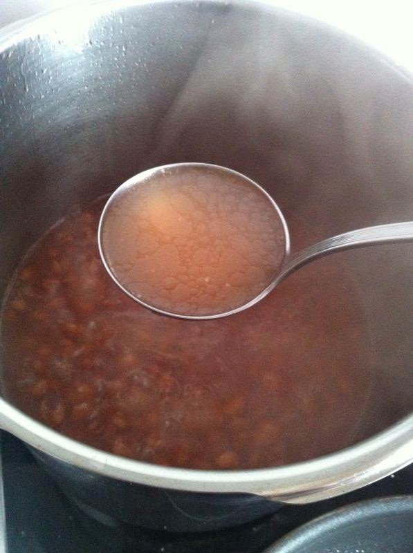 Mientras se baja la válvula, desgrasaremos el caldo del tocino y de las orejas.
