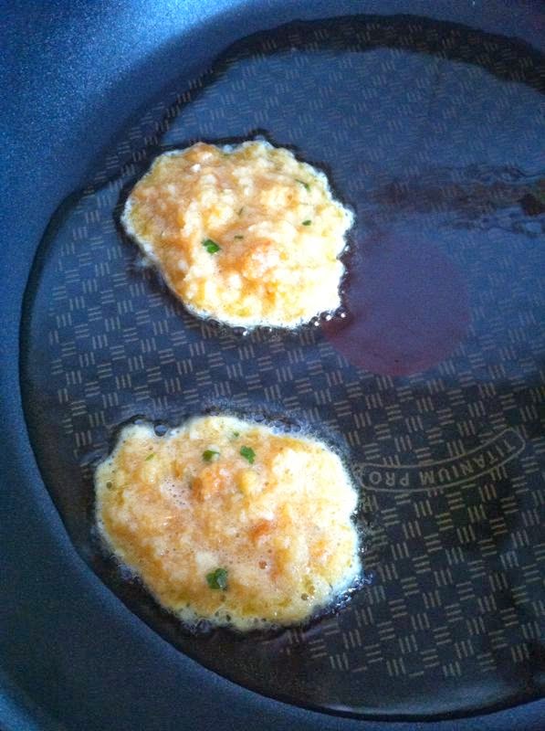 Y una vez caliente, añadiremos unas cucharadas de la mezcla por separado para freír.