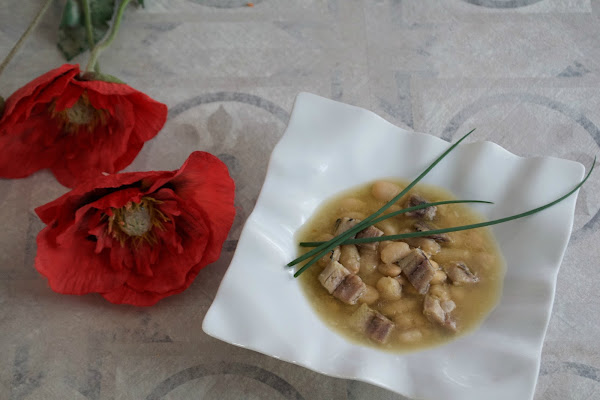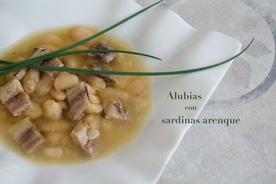 Mientras esperamos el calorcito en Mislares hemos preparado un plato muy aragonés con alubias y sardina arenque o sardina de cubo, que es como la conocemos aquí en Aragón.