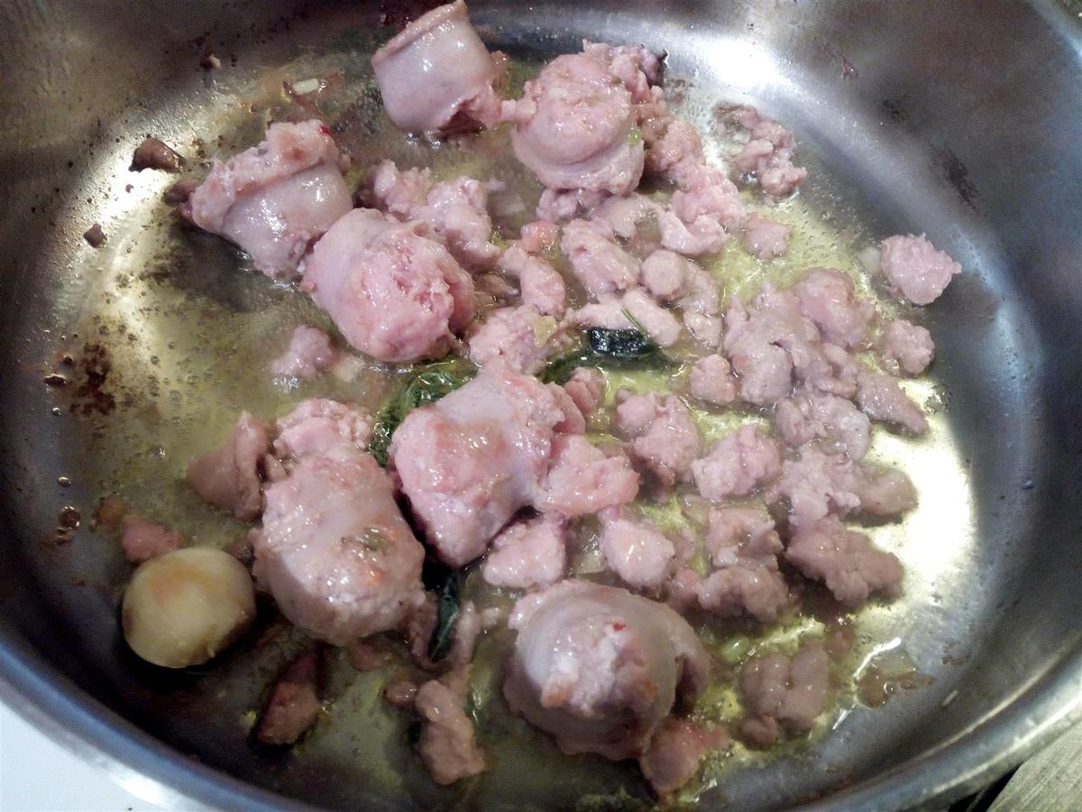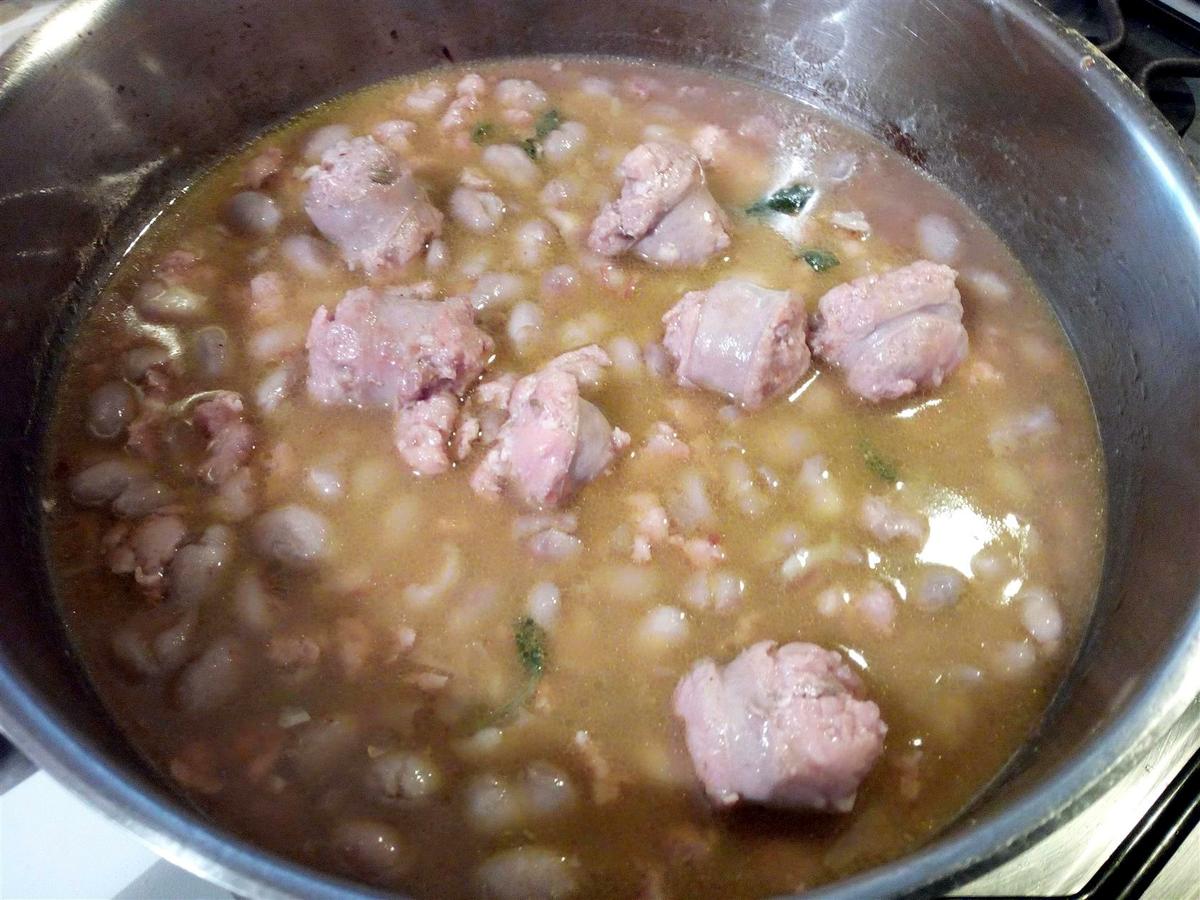 Evidentemente, estamos hablando de una recetas muy sencilla y qué cada día se podría repetir, al final, una lata de alubias, un poco de tomate, unos chorizos en casa siempre los tenemos disponibles. En estos días de cuarantena (ya me imagino leer el post dentro de dos-tres años), cualquier novedad o fantasía culinaria, puede tener salida, aunque, hasta lo posible, he preferido poner a remojo las alubias la noche anterior y cocinar el plato al día siguiente. Por lo tanto, alubias en olla con verduras y hoja de laurel durante 2 horas y media aproximadamente. Unos 20 minutos antes de qué las alubias estén cocidas, en una sartén, poner un poco de aceite, hojas de salvia y dorar los chorizos o salchichas frescas.
