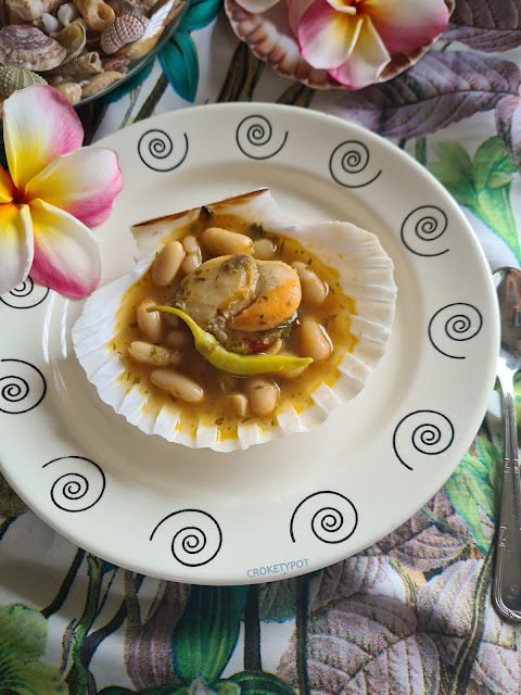 Estamos terminando el verano y apetecen los guisos ligeros y sabrosos, por eso hoy hemos preparado estas alubias que, acompañadas de las vieiras a la plancha resulta un plato de lo más sabroso y rápido de preparar, en cuestión de 20 minutos, como mucho, puedes disfrutar de este plato con sabor a mar.