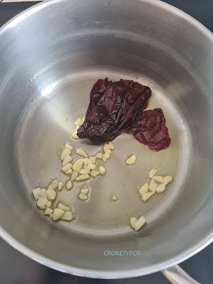 Sacamos el pimiento choricero y le quitamos la carne raspando con un cuchillo, la podremos en la cazuela, aderezamos con sal al punto que nos guste.Para servir, pondremos las vieiras limpias de arena, a la plancha y las pasamos a la olla, servimos con unas piparras.