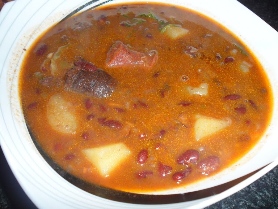 3º - Añadimos la salsa realizada en la batidora a la cazuela de las alubias y seguimos hirviendo . ( Si hace falta , seguimos echando agua ) .