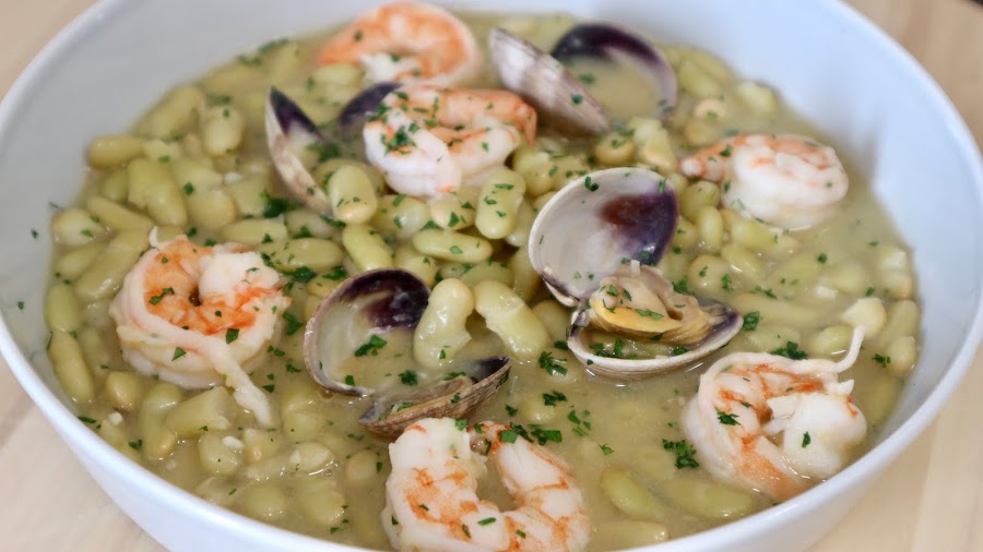 Hoy quiero enseñaros a preparar unas deliciosas alubias o fabes verdinas con almejas y langostinos, si no conoces esta clase de alubia te estas perdiendo un manjar de dioses, es una variedad de alubia o haba de Asturias y a parte de tener ese color verde intenso tan peculiar es una materia prima de extraordinario valor, su piel es mas fina que la de una alubia blanca y su interior es mantecoso y lleno de sabor, además es ideal para acompañarlas con mariscos y pescados como en la receta de hoy, asi que no te la pierdas!
