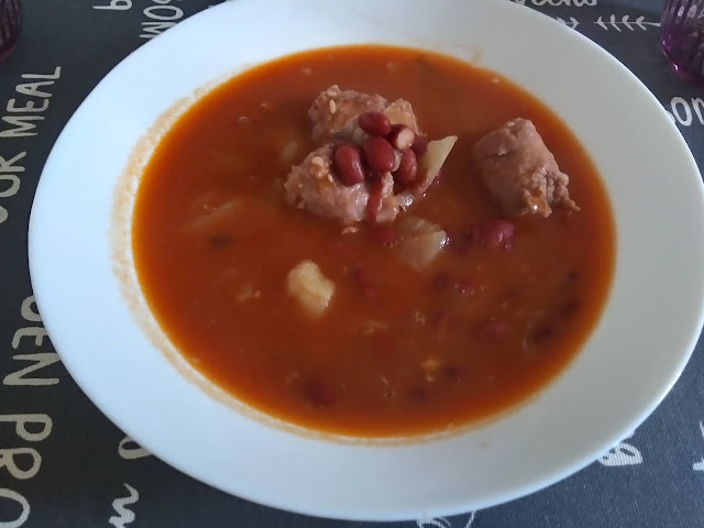 Aunque ya es primavera, siguen apeteciendo platos de cuchara como este. Las alubias rojas Señorío de Sarriá han sido todo un descubrimiento. Son muy cremosas y con un sabor suave pero con personalidad. Las he cocinado con esta butifarra fresca, de Cárnicas Embuena, que tampoco había probado nunca y me ha sorprendido gratamente. Es bastante magra y la combinación de especias que lleva, le da sabor al plato sin hacerse pesado. Podemos preparar más cantidad y congelar en raciones.