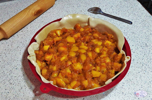 ¡Buenas! ¿Qué tal va la "vuelta al cole"?, la mía está a puntito, pero, mientras llega, voy a seguir metida de cabeza en la cocina para dejaros ricas y sencillas recetas, hoy, concretamente, os dejo este delicioso AMERICAN PIE DE MELOCOTÓN o tarta americana, y, como no podía ser de otra manera, es SIN LACTOSA, SIN GLÚTEN Y SIN AZÚCAR....¿qué más se le puede pedir?.... pues sin más preámbulos....