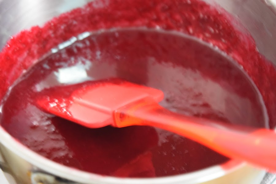 1. Coloca en el procesador el betabel rayado, el aceite y la miel. Procesa hasta que obtengas un puré muy rojo.