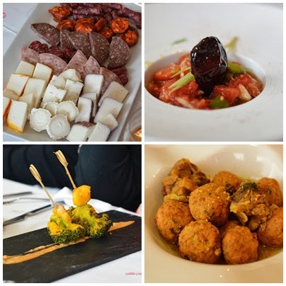 El resto del menú se completó con una magnífica selección de embutidos y quesos tradicionales lorquinos, pipirrana, una magnífico pincho de brócoli y gamba en tempura y unas albóndigas en salsa magníficas.