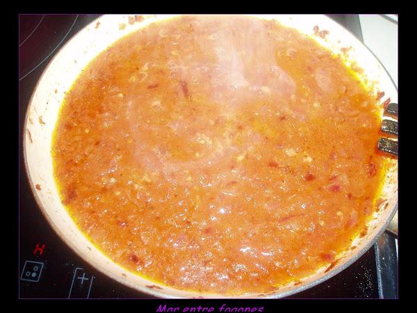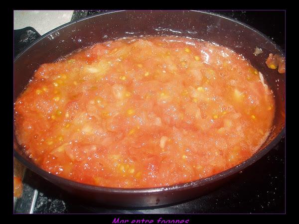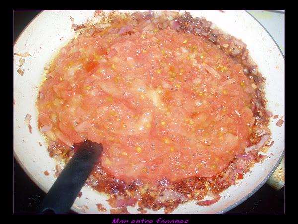 Cuando esta pochadita añadimos todo el tomate que teníamos reservado.