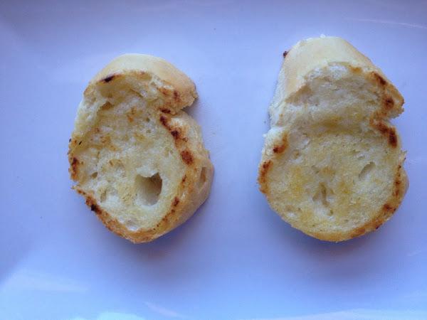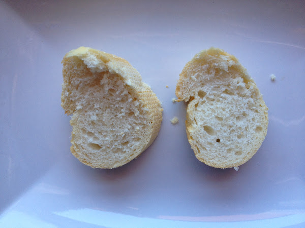 7 Cortamos unas rodajas de pan, que sean gruesas, para que la salsa empape bien y evitemos que se rompa el pan .