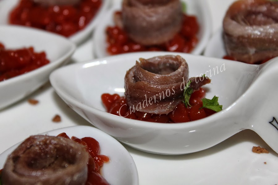 Nosotros preparamos unas cucharitas de caviar con anchoa espolvoreadas de perejil picado. Una auténtica delicia.
