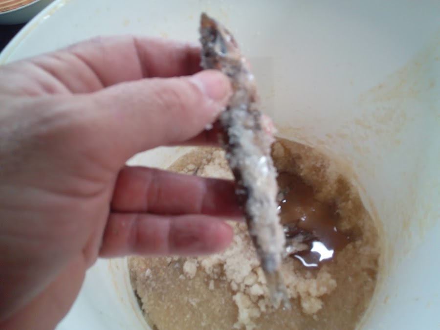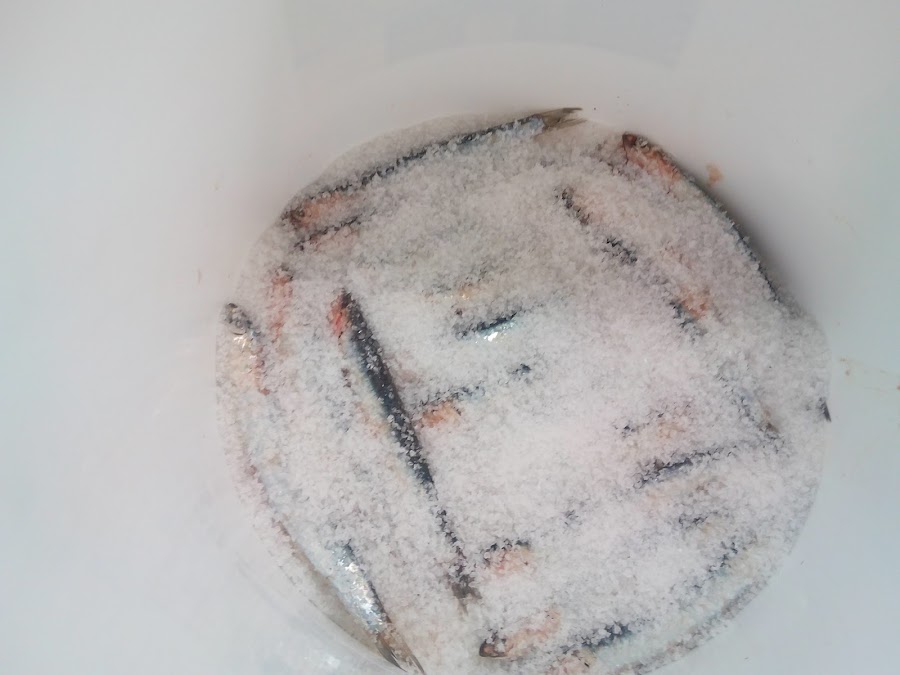 En algunas zonas le dan un corte con las tijeras a la boca del los boquerones antes de salarlos, osea le cortan el pico ja,ja. Yo en este caso no lo hice, pero aconsejan hacerlo.