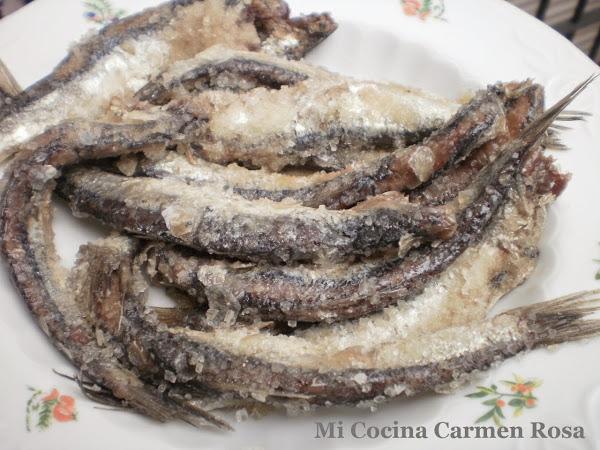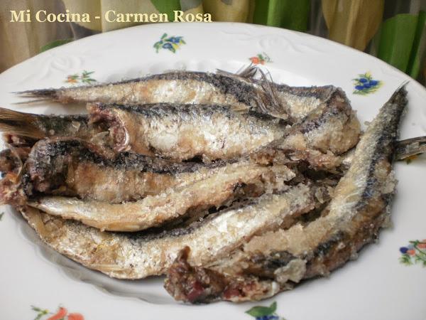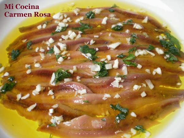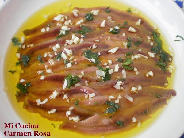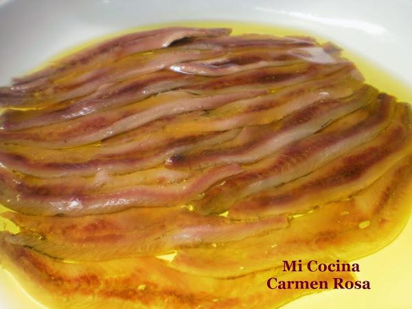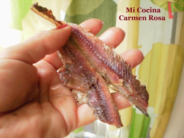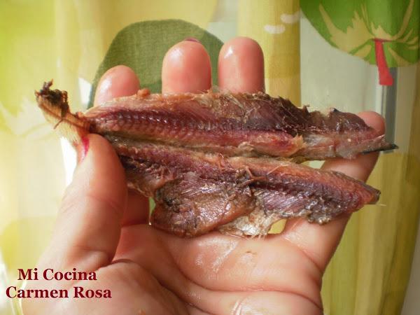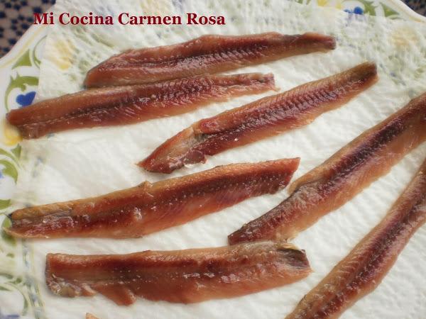 Y como ella solía hacer, yo he limpiado éstas increíbles anchoas, boquerones en salazón que el olerlas me hacen viajar en mi memoria, recordar las playas del Palo, oler el salitre, un beso de la mar?..