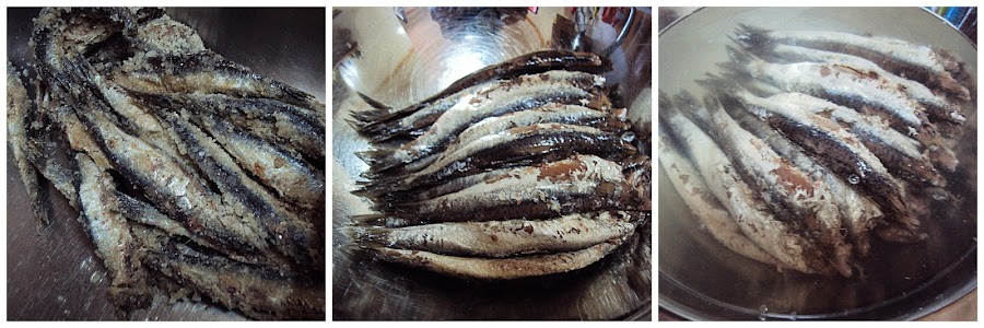 Este proceso se puede hacer abriendo las anchoas una a una dentro de un recipiente con agua, para evitar que puedan romperse, y facilitar el desespinado. Cambia el agua a menudo.