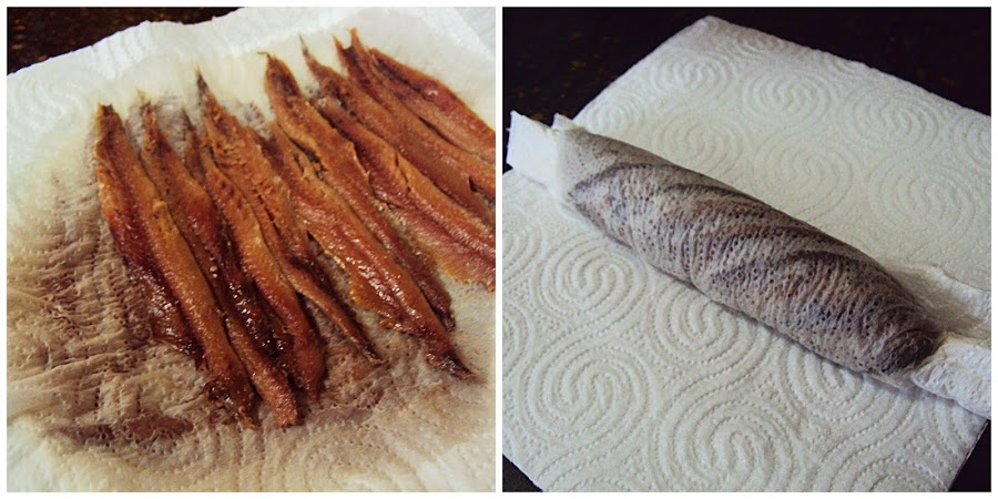 Vamos colocando los lomos por tandas, encima de papel absorbente y enrollamos presionando para retirar el agua que pudiera quedar.