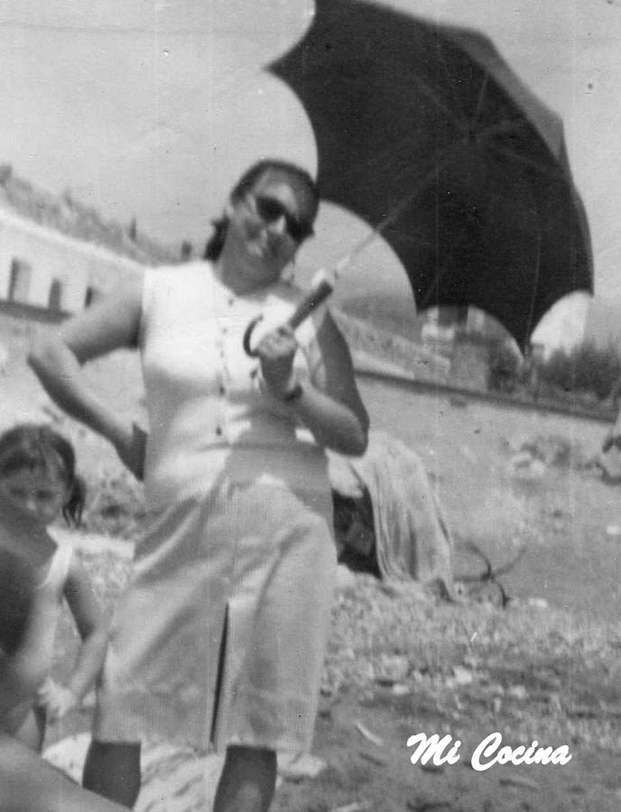 Aunque ella, estoy segurísima que estaría con su paraguas resguardándose del Sol y no metería ni un solo pie en el agua. ¡¡ A quién se le diga que nunca se bañó en el mar, que por lo tanto no sabía nadar y que bajaba al rebalaje lo mínimo y siempre con su paraguas resguardándose de ponerse morena !!