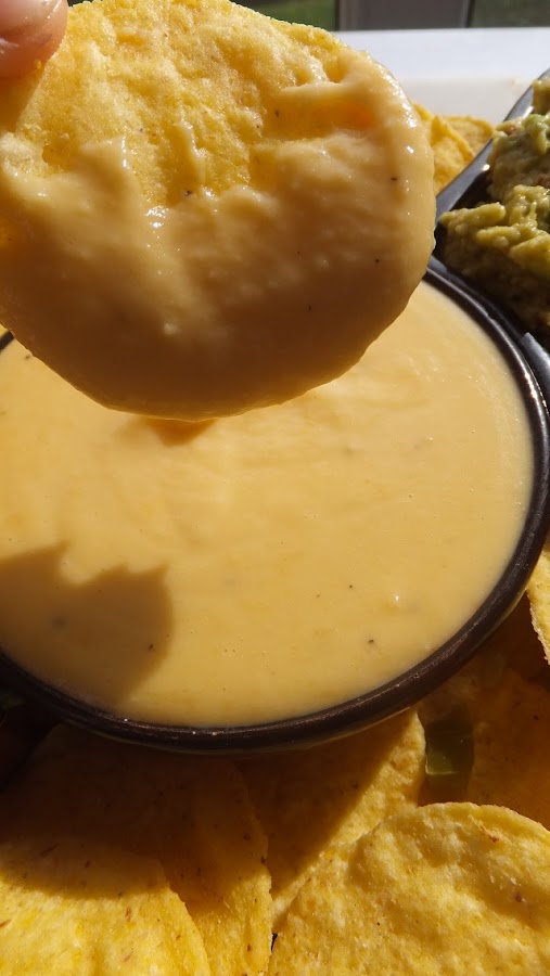 Cuando hago nachos para pocas personas me gusta hacerlos al horno como Igancio Anaya. Hago una pila de chips de tortilla y echó tanto queso (una mezcla de cheddar, emental y parmesano) como puedan soportar. Lo gratinó todo en el horno hasta que la montaña queda cubierta una exquisita lava dorada burbujeante. Pero por no encender el horno a veces hasta pago, especialmente en verano, por eso me parece tan importante tener una buena receta para hacer salsa de queso. La mía es una adapatación de la receta de MJ y es una de las más codiciadas de todo mi recetario entre mis amigos algunos incluso la han hecho y todo. Es además la mejor manera de hacer nachos para un numero muy alto de gente porque la salsa se mantiene líquida incluso mucho después de que el queso gratinado ya se hubiese enfriado y acartanodo y además se puede prepara con antelación y calentarla cuando llegue el momento de servirla. Estoy absolutamente convencida de que si le dais una oportunidad no dejareis que se aleje nunca de vuestro lado.
