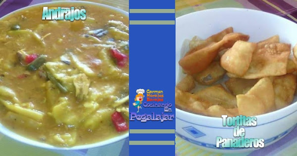 Esta masa se elabora con harina, agua y sal, y se incorpora recién hecha al guiso y se cocina en el caldo, lo podéis cortar en tiras o como ya he dicho antes en Torta y romperlo dentro del Guiso haciéndole Jirones. Con esta misma masa se hacen "La Tortitas de Panadero Fritas" que se acompañan a los Andrajos, o si queréis la rebozan en azúcar una vez fritas y para la merienda. Va al gusto de cada uno.