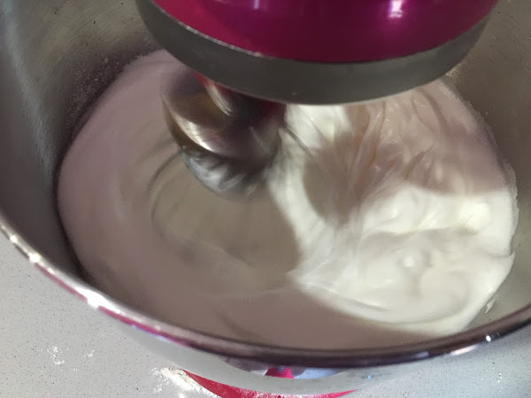 5. Aumentamos a velocidad media y empezamos a batir las claras. Pasado 1 minuto subimos a velocidad máxima y batimos durante 2 o 3 minutos mas. Las claras deben montarse por completo formando picos blandos.