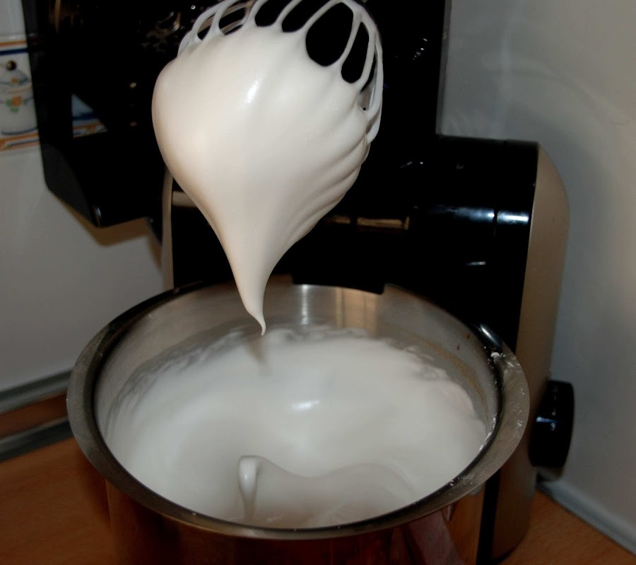 Levantar las claras a punto de nieve junto con el cremor tártaro. Si no se tiene cremor se puede añadir unas gotitas de zumo de limón.