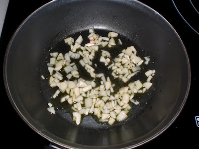 En una sartén se ponen unas gotitas de aceite y se echa el ajito y dejamos que se dore un poco