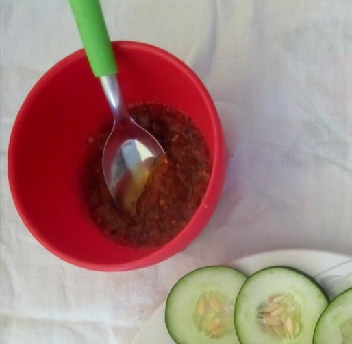 8.-Cuando los tomates y el chile estén asados poner en la licuadora con un poquito de sal y licuar. Así obtenemos la salsa.