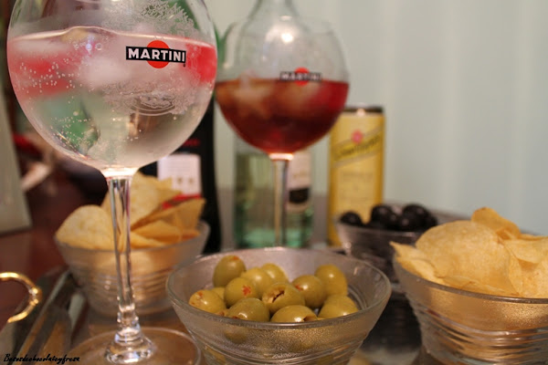 Aperitivo Martini & Tonic con patatas y aceitunas