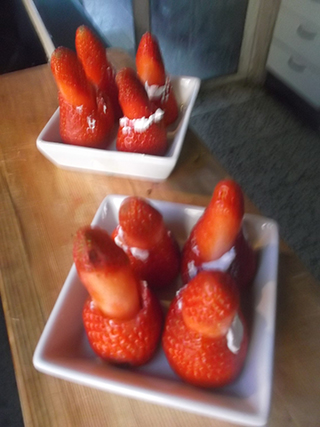 Las tapamos con el corazón de los fresones que hemos extraído.