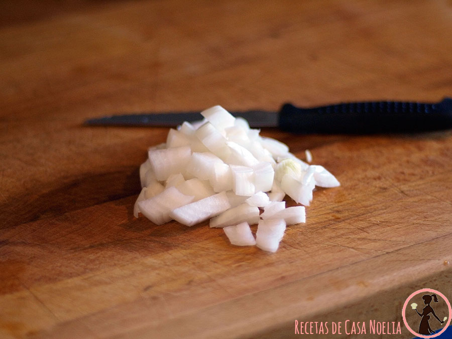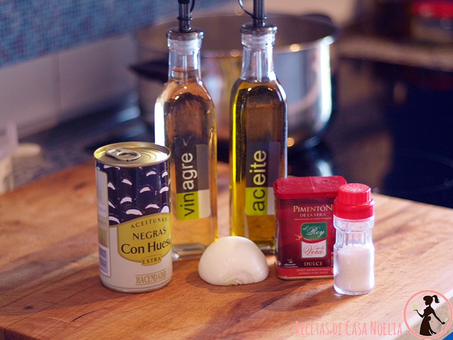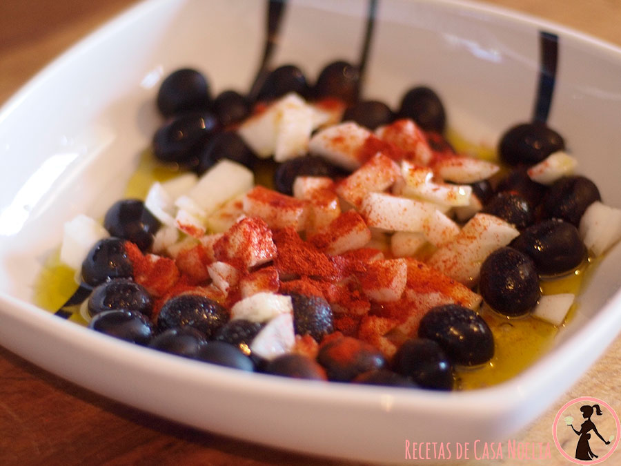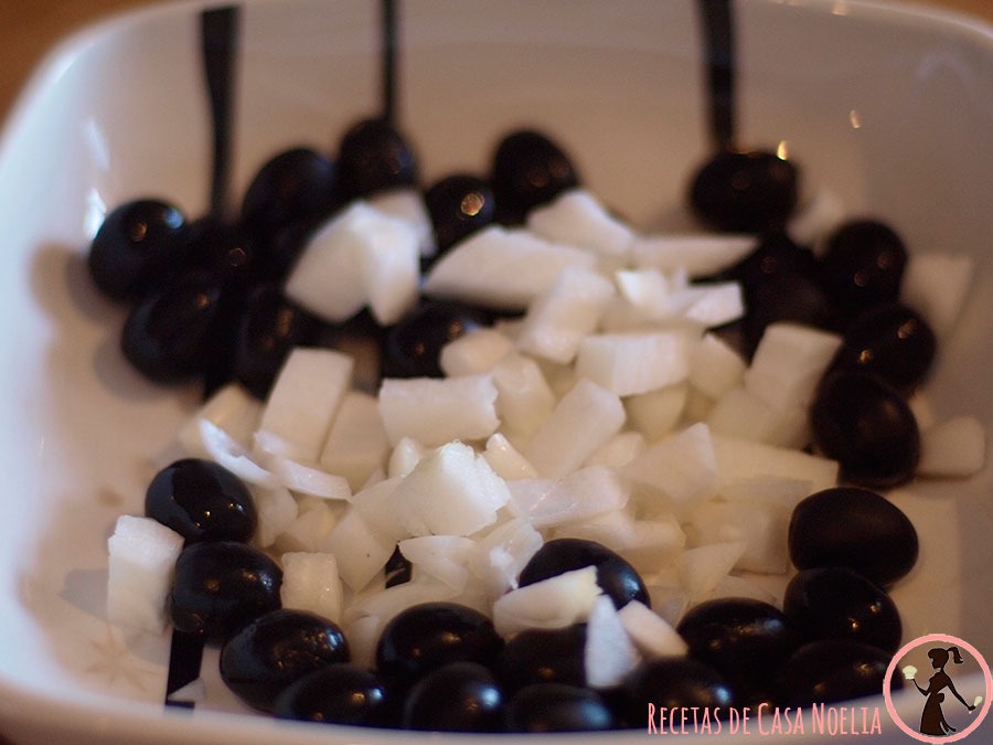Cebolla o cebolleta (para una lata de aceitunas negras media cebolla es suficiente)