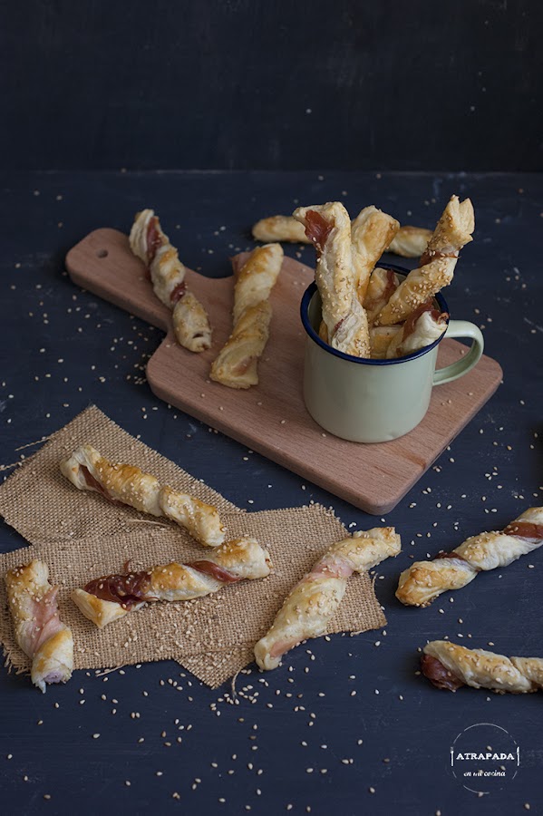 4. El hojaldre da mucho juego en la cocina, tanto en platos salados como dulces y es una muy buena opción para aperitivos rápidos de preparar, como estos lazos de hojaldre salados con jamón serrano y jamón cocido.