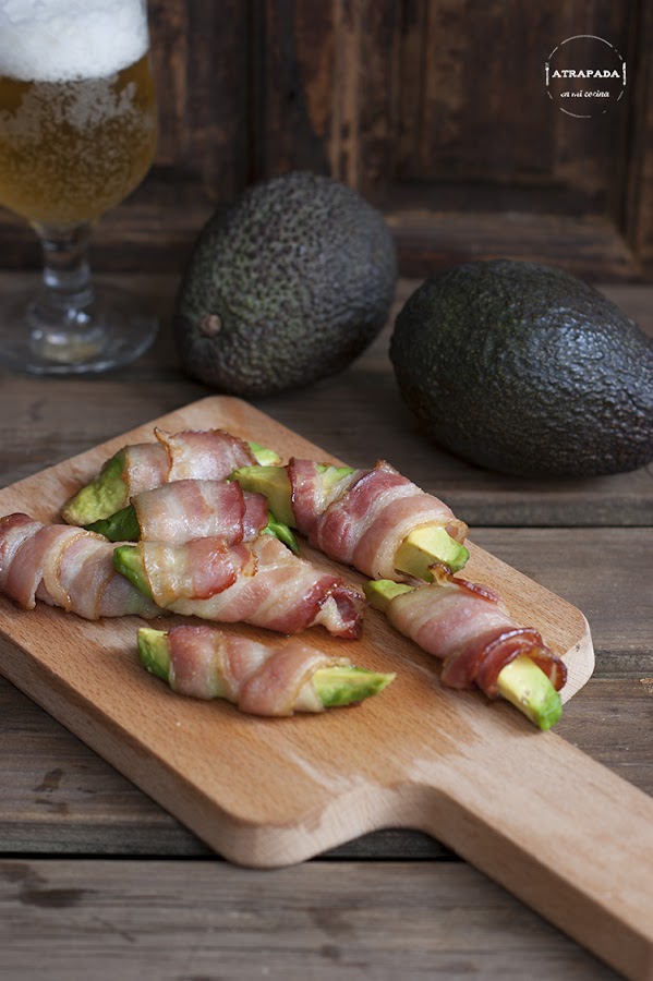 1. Para empezar una combinación sorprendente por lo menos para mí, y que fue un éxito total, unos wrapped de aguacate con bacon. Seguro que volarán de la mesa.