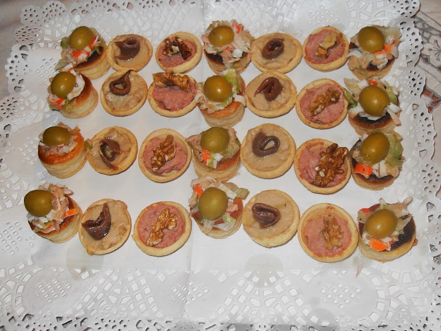 Tartaletas rellenas de paté de salmón y anchoa.