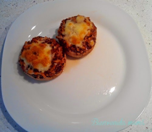 Esta es otra receta que encontré en el blog de Bienvenida mamá, que me parece tan sencilla de hacer y tan rápida que tenía que incluirla. Son Champinones rellenos o champipizzas en el horno, no ensucian nada y no contienen grasas, son estupendos.