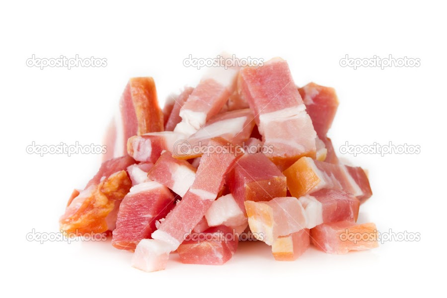 Saltear el bacon cortado a cuadritos pequeños. Una vez salteado el bacon, mezclar con las verduras, y agregar el vasito de vino blanco, remover y dejar que el alcohol se evapore.