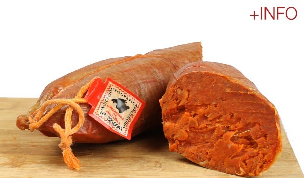 Cortar trocitos de sobrasada para rellenar los champiñones.
