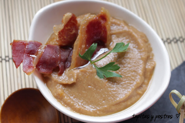 Comenzamos con una crema de lentejas con crujiente de jamón . Una crema suave que podéis usar en las ocasiones especiales, o podéis hacer como los italianos, consumirla el día de Nochevieja porque aseguran que les trae suerte. Podéis preparar las lentejas como tengáis por costumbre. Yo os dejo aquí la receta de como yo las hago. Y solo tendréis que preparar el crujiente de jamón en el horno durante unos minutos.