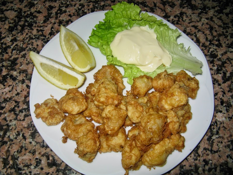 Y por último desde nuestro blog de "El Rincón de Casa El Caminero" os dejamos estos bocados con sabor a mar, típicos en nuestra tierra, Asturias, se trata de FRITOS DE PIXIN en Asturias al rape lo llamamos "pixin", lleva un poco de elaboración pero tan sólo antes de servir, se tienen adobados en la nevera y luego tan solo pasar por harina y huevo.