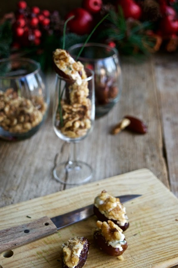 Patricia desde su blog "Pattys Cake" nos trae estos ricos DÁTILES RELLENOS DE QUESO Y NUECES maravillosa tentación, además nos recuerda a las gran olvidadas frutas desecadas que cobran algo más de protagonismo durante la Navidad