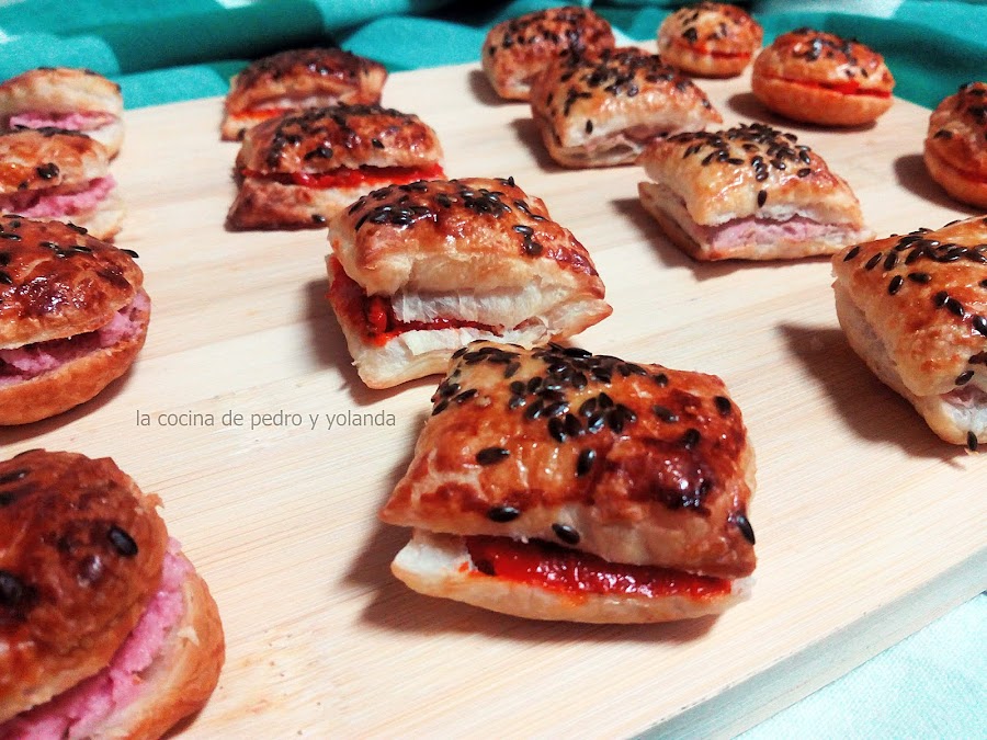 El hojaldre siempre resulta un aliado perfecto a la hora de las pequeñas entradas. Desde una básica preparación inicial .., en "Cocina Fácil", nos sugieren dar la forma que elijamos y tres tipos de rellenos que no necesitan elaboración. Para servirlos templaditos, será suficiente con el calor residual del horno una vez apagado. Tienen que estar buenísimos !!