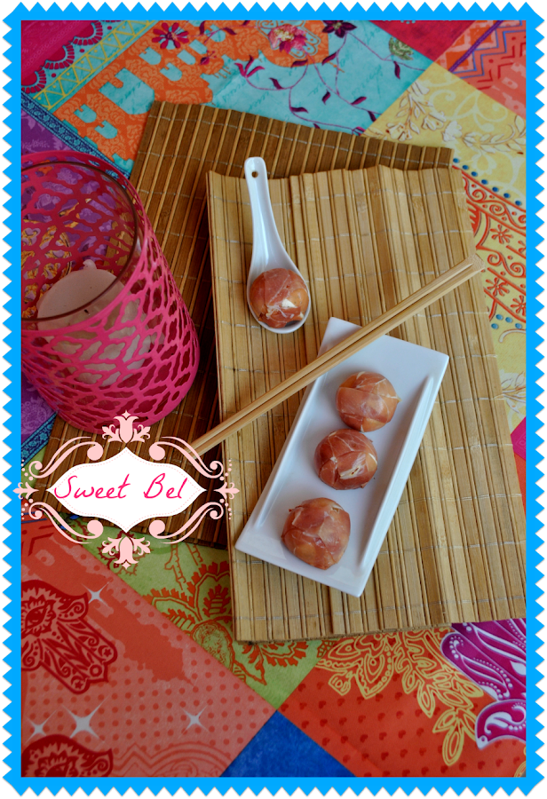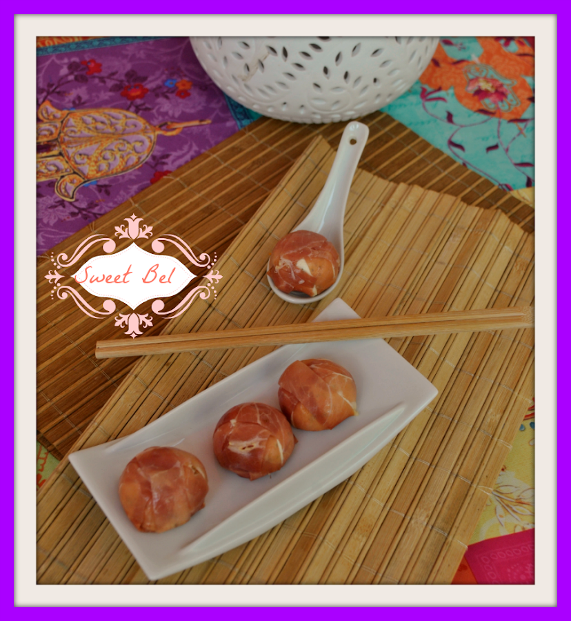 Son unas medio esferas de jamon rellenas de queso con trocitos de nueces o de salmon!! no me digais que no es genial!!! .