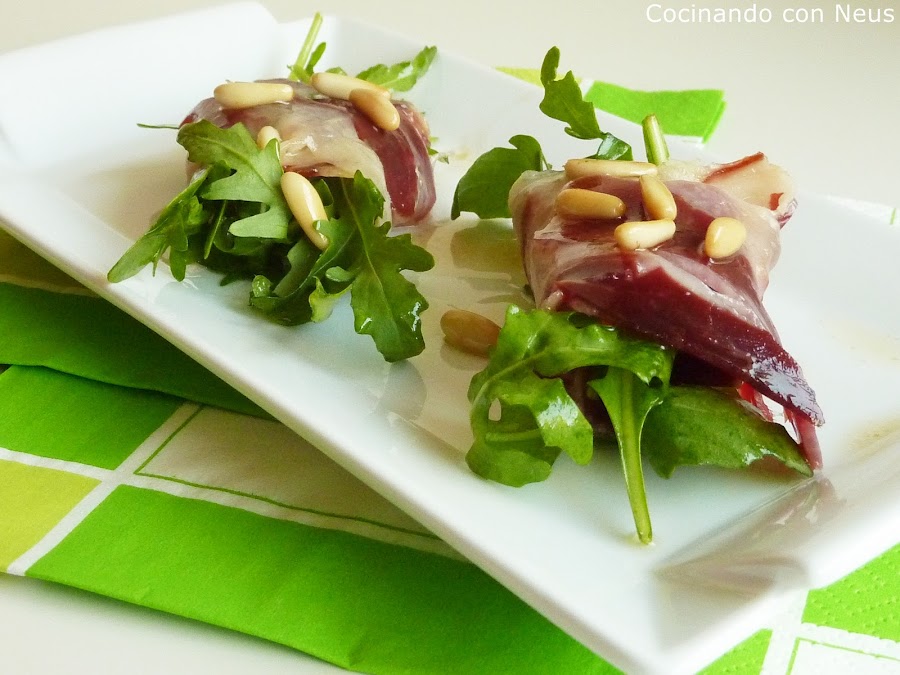 Estos Rollitos de jamón serrano con rúcula, deben estar deliciosos. Nos los regala, Cocinando con Neus.