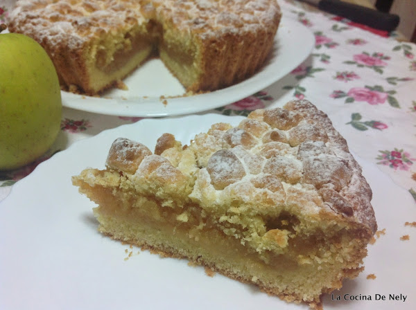 Bueno esta es una tarta de origen Alemán. Se prepara con una masa de levadura.Sobre ella se esparce una especie de granulado característico llamado Streusel .Debajo del Streusel puede ponerse frutas o compotas en mi caso es de manzana por eso lleva Apfel al principio.