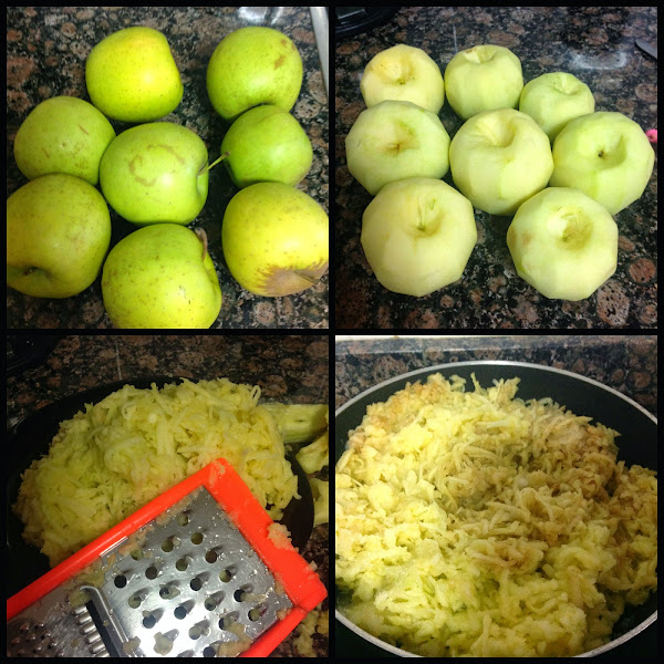Lavar, pelar y rallar todas las manzanas dejando el corazón de la manzana.